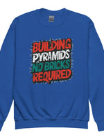 Introducing the 'Pyramid Builder Crew' sweatshirt - no bricks needed! Crafted for comfort and style, this youth sweatshirt features bold graffiti-inspired text that empowers young minds to build big dreams. Perfect for daily wear or playtime adventures, it's made with soft, durable fabric that stands up to the test of play and wash. Inspire your inner acrobat to construct their imagination with every wear!