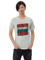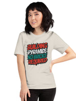 Unleash the acrobat in you with our "Urban Pyramid Tee," where art meets ambition without a single brick. This t-shirt showcases an eye-catching graffiti statement "Building pyramids, no bricks required" splashed across the chest, inspiring creativity and resilience. Perfect for those who admire acrobatics and metaphorical challenges, it’s not just a garment; it’s a manifesto for builders of modern dreams. Made with premium soft fabric to ensure comfort and durability, this tee fits seamlessly into any casual wardrobe. Embrace your inner builder and make a bold statement every time you step out.