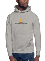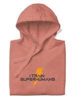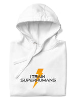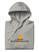 Show the world your superpower with this bold statement piece. Featuring the text "I train superhumans" emblazoned on the chest with a striking flash of lightning behind it, this hoodie is perfect for those who shape champions. Whether you're coaching, training, or just living the active lifestyle, this stylish and comfortable hoodie will keep you warm while making a statement. Made from premium materials, it's designed to endure your toughest workouts and busiest days. Join the league of extraordinary trainers and elevate your game.