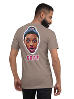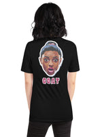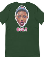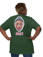 This bold and eye-catching T-shirt features a sticker-style design of legendary gymnast Simone Biles with a fun, crazy expression. The word "GOAT" (Greatest of All Time) below adds to the excitement, making this shirt perfect for fans who admire her greatness. Whether you're a Simone Biles fan or an athlete, this T-shirt lets you make a statement with its large print, comfortable fit, and playful design. Ideal for casual outings, training, or showing off your love for gymnastics and the GOAT.