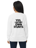 Showcase your bold personality and love for sustainability with this eco-friendly sweatshirt from our Terra Pure Vault collection. The large back print proudly declares, “Yes I do my own stunts!” making it perfect for those who live life on their own terms. Crafted with a focus on the environment, this soft and comfortable sweatshirt is great for casual wear while helping reduce your ecological footprint. Stand out with style and purpose!