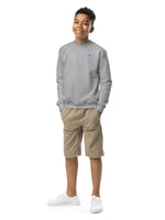 Dress in comfort with a touch of identity. Our Youth Identity Sweatshirt embodies the essence of our brand, spotlighting our iconic logo in a subtle, minimalist design on the left chest. Made with the soft, durable fabric of the Gildan 18000B, this sweatshirt is not only a cozy garment but a statement of belonging and pride.