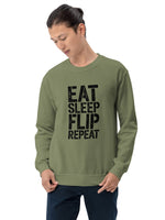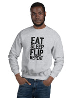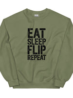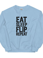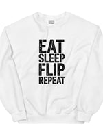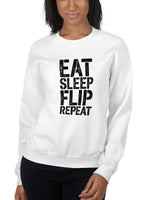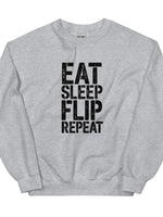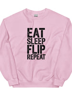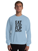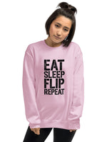 Get ready to embrace your passion with our "Eat Sleep Flip Repeat" sweatshirt. Designed for those who live and breathe gymnastics, this cozy piece features the iconic mantra boldly printed on the chest. Whether you're practicing, competing, or just showing your love for the sport, this sweatshirt brings comfort and style together. Perfect for daily wear or after-gym comfort, it's a must-have for every gymnast at heart. Wear it proudly, live it fully!