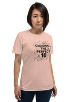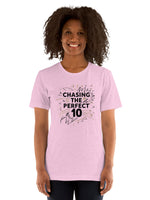Strive for excellence with this bold tee, featuring the inspiring "Chasing the Perfect 10" design prominently on the front. Perfect for gymnasts and fans, this t-shirt is more than just apparel—it’s a reminder to push your limits every day. The large, centered text makes a statement while the soft fabric ensures comfort whether you’re training, coaching, or just showing off your love for gymnastics. Comfortable, stylish, and motivational, this tee is a must-have for those who never stop chasing perfection.